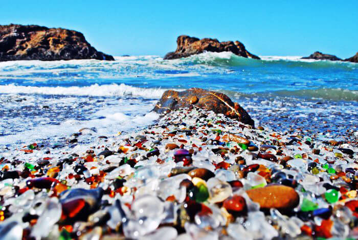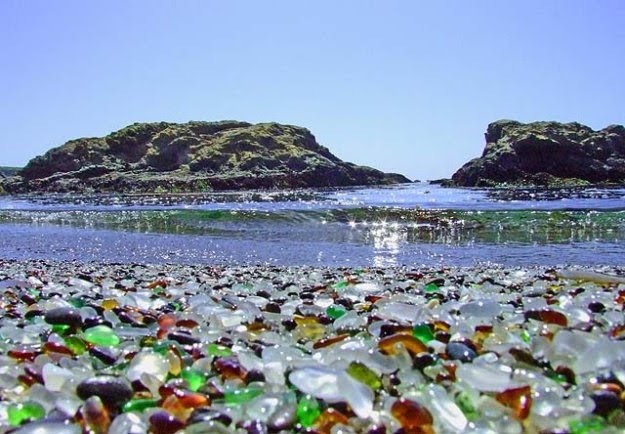 شاطئ "الزجاج" الساحر في ولاية كاليفورنيا الأمريكية ، يعدّ واحداً من أغرب شواطئ العالم .. فهو ليس شاطئاً رملياً أو حجرياً فحسب إنما تغطيه قطع من الزجاج الملون ، والأغرب من ذلك هو قصة هذا الشاطئ !
