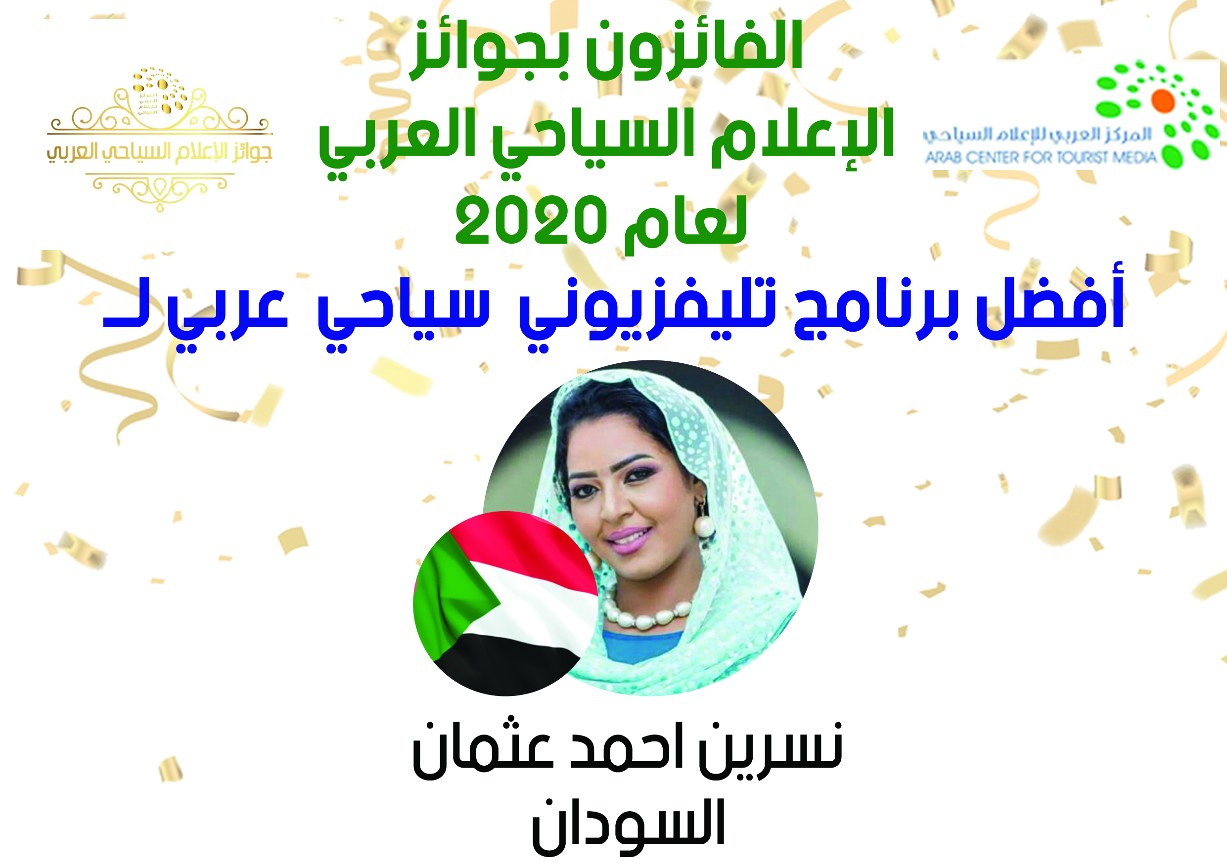 فاز برنامج "مسافرين " لمقدمته الإعلامية نسرين عثمان من السودان بجائزة " أفضل برنامج تليفزيوني سياحي"