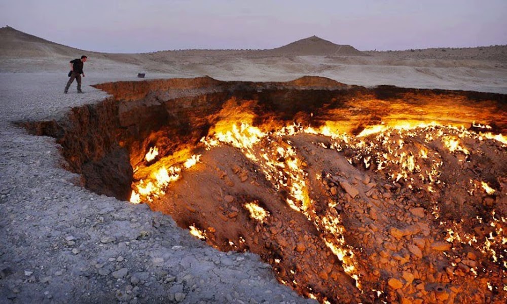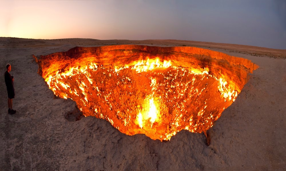 بالصور والفيديو.. شاهدوا "باب جهنم" حفرة مشتعلة بالنيران منذ 43 عاما بدون توقف!