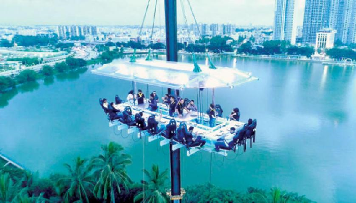 لأول مرة.."فلاي دايننج" مطعم معلق في سماء في الهند