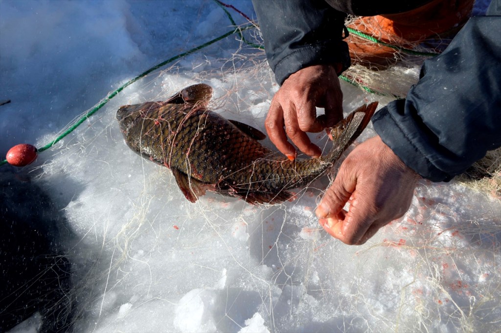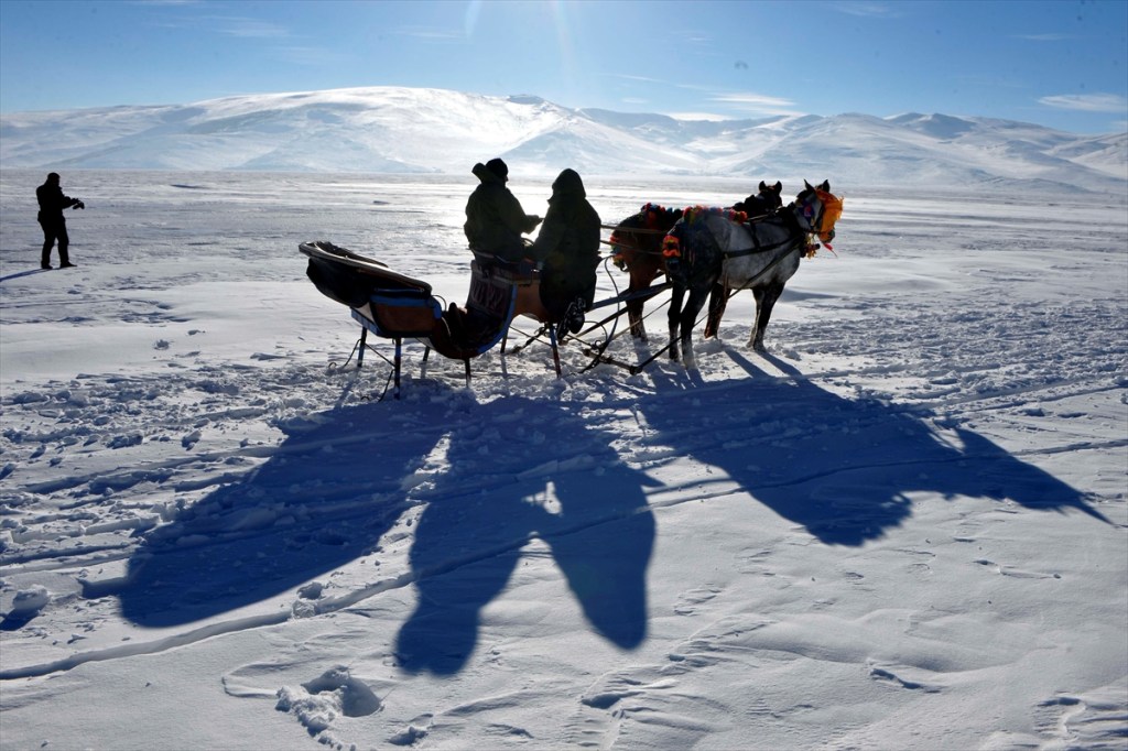 وتتجمد مياه البحيرة، التي تعد ثاني أكبر بحيرة شرقي الأناضول، بالكامل مع انخفاض درجات الحرارة إلى ما دون الصفر.