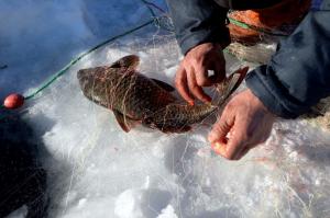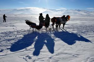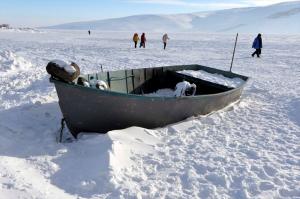 ويتجول السياح فوق سطح البحيرة المتجمد باستخدام زلاجات تجرها الخيول، كما يحاولون صيد السمك بطريقة الإسكيمو، عبر رمي الشباك في فتحات يصنعونها في سطح البحيرة المتجمد، الذي يصل سمكه إلى نصف متر في بعض الأماكن.