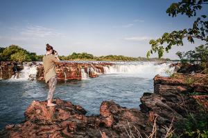 وعادة ما يظهر السياح في سيارات السفاري، التي تنطلق على الطرق الرملية لمسافة 10 كيلومترات تقريباً لمشاهدة الأسود والحيوانات البرية، التي تظهر بلون الرمال الظلال هروباً من الشمس الحارقة في إفريقيا.