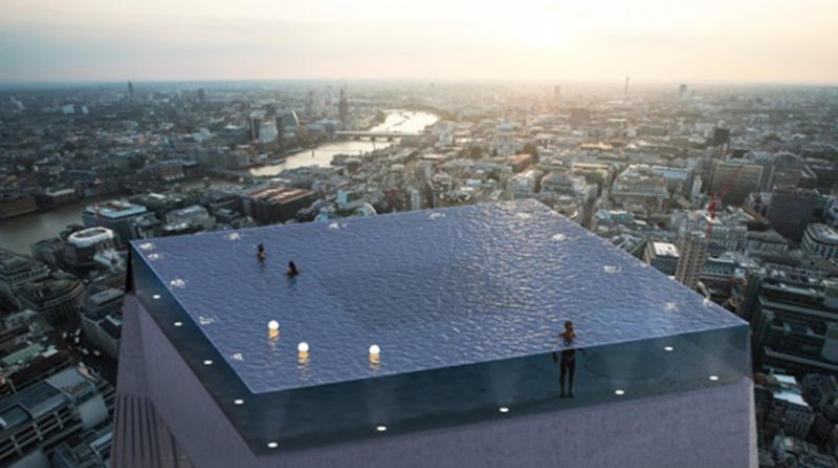 تستعد العاصمة البريطانية لندن لتضم معلما جديدا من معالمها المعمارية البارزة، بعدما كشفت إحدى الشركات العقارية الإنجليزية النقاب عن تشييدها لـ"مسبح" حوض سباحة فوق أعلى ناطحة سحاب في وسط لندن، ويستحوذ حوض السباحة على كامل مساحة سقف الناطحة بالكامل.