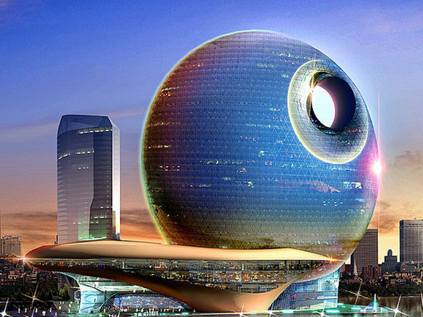 فندق القمر النجمي المميت، يقع بالتحديد في باكو، أذربيجان، فهو مستوحى من الفضاء الخارجي في شكله، فإذا نظرت ستجد دائرة مُفرغه من الداخل وهي تشبه الثقب الأسود، بالإضافة إلى الشكل الدائري الكامل في الصورة الذي يعبر عن مرحلة اكتمال القمر حين يكون في شكل بدر و مفرغ قليلاً من ناحية اليمين حيث يأخذ شكل القمر وهو في طور الهلال.