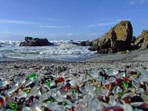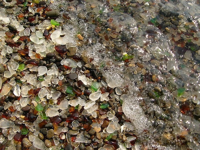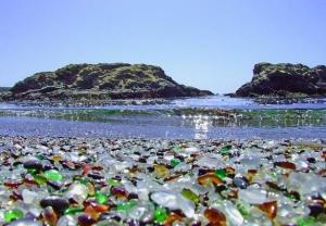 شاطئ "الزجاج" الساحر في ولاية كاليفورنيا الأمريكية ، يعدّ واحداً من أغرب شواطئ العالم .. فهو ليس شاطئاً رملياً أو حجرياً فحسب إنما تغطيه قطع من الزجاج الملون ، والأغرب من ذلك هو قصة هذا الشاطئ !