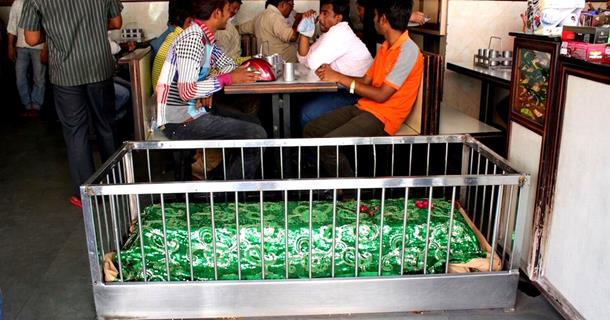 تم بناء مطعم نيو لاكي في مدينة أحمد آباد على مقبرة قديمة ، ويعتقد صاحب المطعم أن هذا الأمر هو عامل جذب كبير للناس ، حيث يتناول الزبائن طعامهم وسط الأكفان ، ويمر العاملين بالمطعم بين التوابيت الخضراء الممتدة على الأرض حاملين طلبات الزبائن .