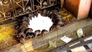 معبد الفئران – معبد كارني ماتا 30 كم من منطقة بيكانير في راجستان ، يحتوي على ضريح كارني ماتا ، ويتم هناك عبادة الفئران ، حيث يعتقد أن الجرذان عبارة عن تجسيد للآلهة كارني وأفراد أسرتها ، هذه القرية الصغيرة تدعي أن لديها أكثر من 20.000 فأر يتغذوا على الحليب كل يوم .