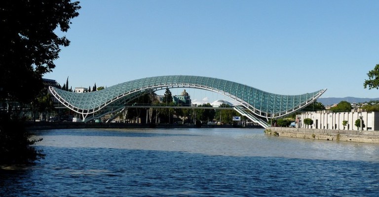 يمكنك المشي في المدينة التي تحمل الكثير من التاريخ حيث تستطيع أن ترى البناء الحديث مثل جسر للسلام. لأنه يربط المدينة القديمة مع منطقة جديدة، وينظر إليه على أنه واحد من رموز تبليسي المعاصره. جسر السلام الرائع هو أكثر مكان مذهل في الليل حيث الاضواء الجميله.