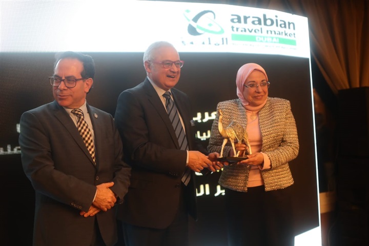 وسلم الدكتور سعيد البطوطي المستشار الاقتصادي لمنظمة السياحة العالمية والدكتور عمرو صدقي رئيس لجنة السياحة والطيران بالبرلمان، درع التكريم للخبير السياحي إلهامي الزيات وميرفت حطبة رئيس القابضة للسياحة والكاتب الصحفي جلال دويدار وصلاح عطية نائب رئيس جمعية الكتاب السياحيين ومحمد البهنساوي رئيس تحرير الأخبار والمخرجة أنعام محمد علي ومحمد فاروق رئيس لجنة السياحة الإلكترونية والفنان محمد رياض، على هامش «قمة الإعلام السياحي العربي» والتميز والرواد 2020 بمشاركة 14 دولة عربية برعاية الدكتور خالد العناني وزير السياحة والآثار.
