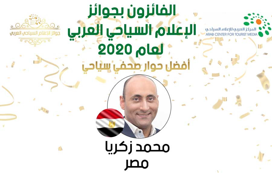 ضمن جوائز الإعلام السياحى العربى 2020محمد زكريا من مصر يفوز بجائزة أفضل حوار صحفي سياحي