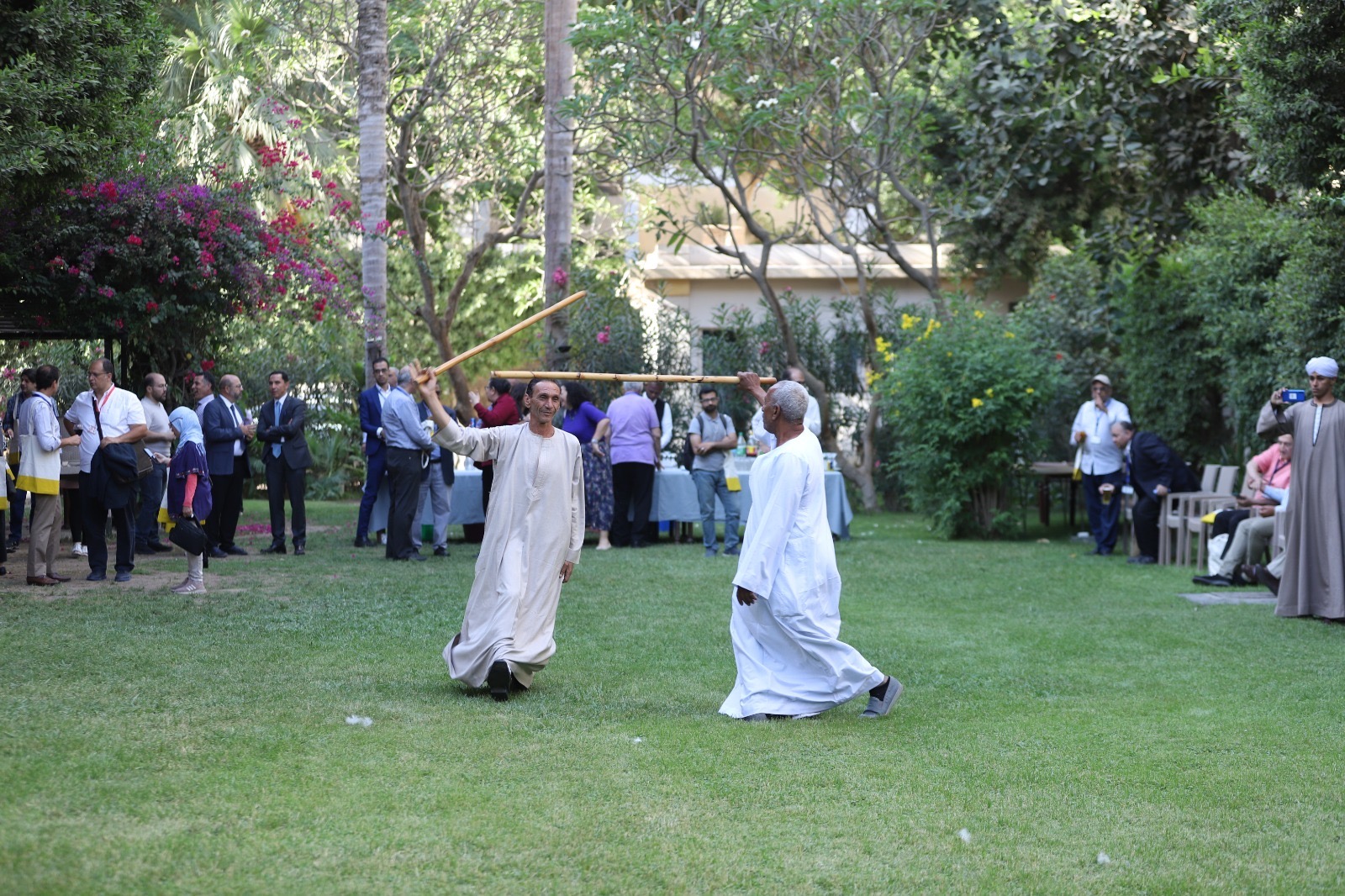 فيما أستمتع الحضور بعرض لفن التحطيب ، بأداء مميز لهذا الفن الشعبي الذى يعكس جزءًا مهمًا من التراث الثقافي لإسنا.