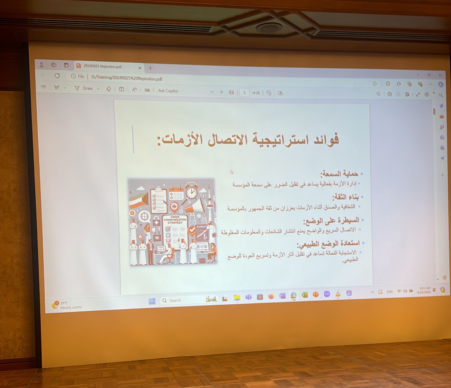 شارك السعودي خالد آل دغيم، رئيس الجمعية السعودية للإعلام السياحي ورئيس اللجنة التأسيسية للجمعية الخليجية للإعلام السياحي، في مؤتمر الاتصال المؤسسي الاستراتيجي الذي أُقيم افي الكويت اليوم و قدم خلاله ورقة عمل بعنوان "دور الاتصال الاستراتيجي المؤسسي في التسويق للقطاع السياحي بدول مجلس التعاون الخليجي". وكان المؤتمر قد جمع نخبة من الخبراء والممارسين في مجال الاتصال المؤسسي والعلاقات العامة والإعلام من الكويت والمملكة العربية السعودية وبعض الدول العربية، وتم خلال المؤتمر تبادل الأفكار والخبرات حول أهمية الاتصال المؤسسي في تعزيز فعالية المؤسسات وتحسين صورتها العامة. تناول المؤتمر أحدث الاتجاهات والتقنيات في مجال الاتصال وكيفية توظيفها لتحقيق الأهداف الاستراتيجية للمؤسسات. وتضمن المؤتمر عدة جلسات وورش عمل تفاعلية، شارك فيها عدد من الشخصيات البارزة في التخطيط الاستراتيجي والإعلام والعلاقات العامة على مستوى الوطن العربي. هدفت هذه الجلسات إلى تعزيز الوعي بأهمية الاتصال المؤسسي وتبادل التجارب الناجحة بين المشاركين من الوزارات والهيئات والشركات، مما يسهم في تطوير بيئات عمل أكثر فعالية وابتكارًا. وفي ورقته، استعرض آل دغيم أهمية التواصل مع العملاء في بناء السمعة الإيجابية وتعزيز الثقة والمصداقية، بالإضافة إلى دور الاتصال في إدارة الأزمات، وتنمية الوعي، وتقوية العلاقة مع وسائل الإعلام، وتعزيز الهوية الثقافية وبناء العلامات التجارية. وتم في ختام المؤتمر تكريم آل دغيم لمشاركته الفاعلة والايجابيه .
