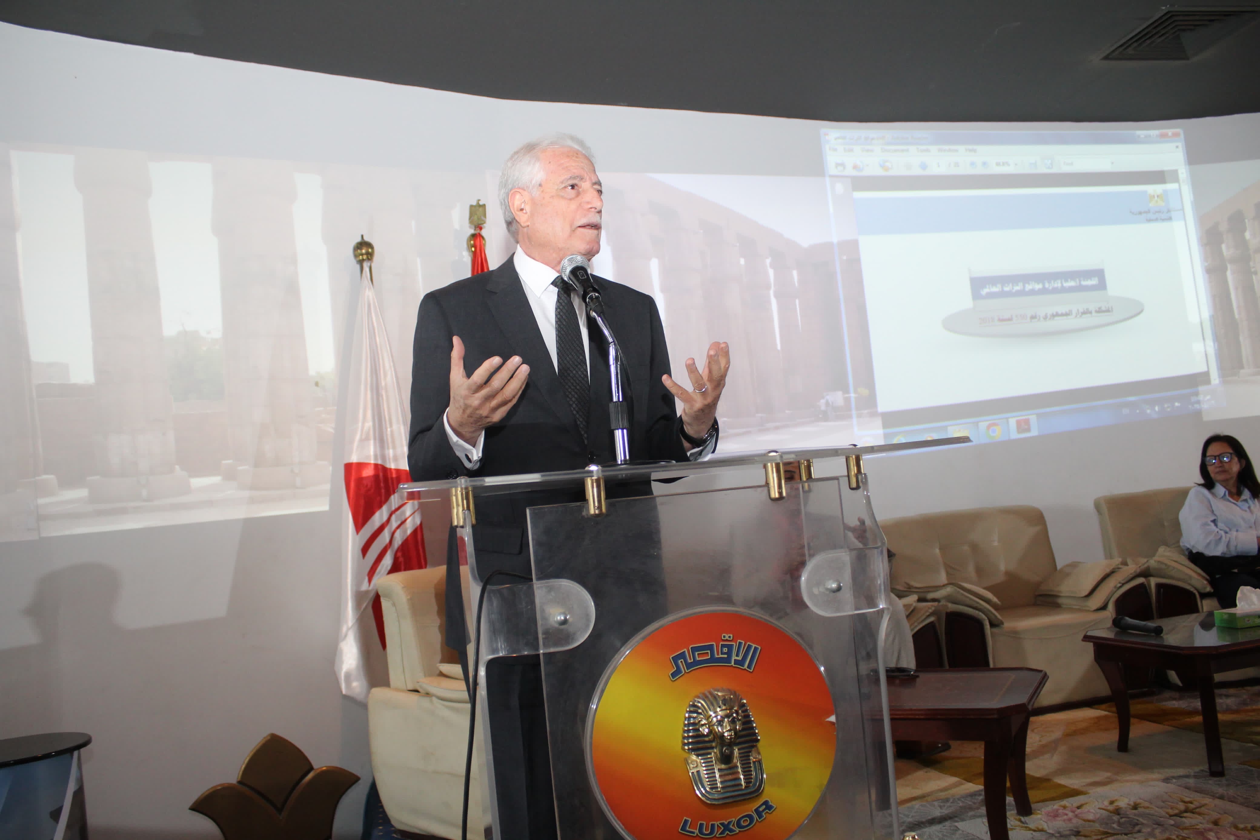 في أجواء دافئة ومفعمة بالروح الوطنية والاعتزاز بالهوية الحضارية، ألقى السيد اللواء أ. ح دكتور/ خالد فودة، مستشار رئيس الجمهورية للتنمية المحلية ورئيس اللجنة العليا لإدارة مواقع التراث العالمي، محاضرة هامة صباح اليوم بمكتبة مصر العامة بالأقصر، ضمن فعاليات المؤتمر الدولي الخامس عشر حول “الاستدامة والتنمية المتكاملة والبحوث المتقدمة في السياحة والتراث”، والذي يُعقد في الفترة من 15 إلى 19 أبريل، تزامناً مع احتفالات يوم التراث العالمي.