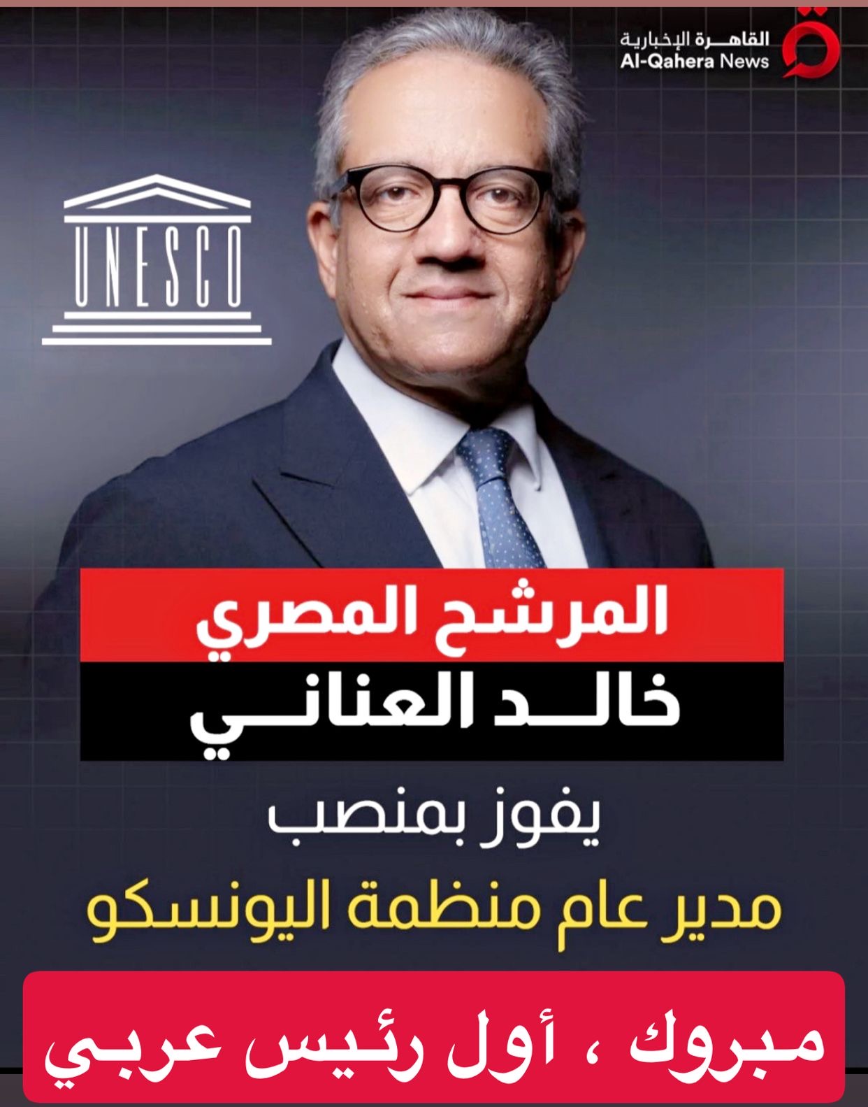 ألف مبروك للدكتور خالد العناني.. ومليون مبروك لمصر والعالم العربي.