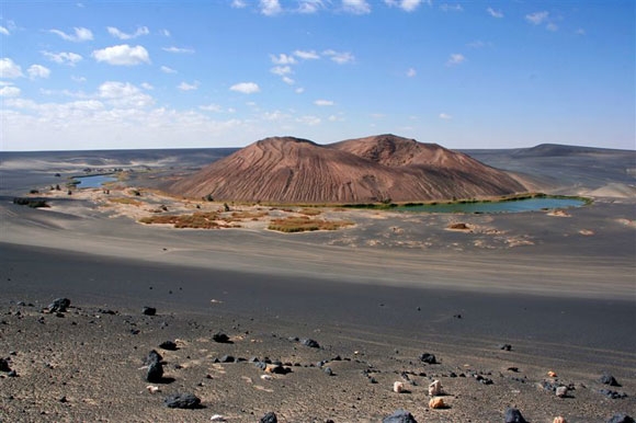 خاص - المركز العربى للإعلام السياحى جبل واو الناموس هو جبل بركاني في جنوب وسط ليبيا وجنوب الهروج. يبلغ ارتفاعه 575 متر، وتعتبر من أكثر مناطق العالم غرابه حيث أنها عبارة عن جبل بركاني وصفيح بركاني خامد ذا صخور بازلتية سوداء، به عدد كبير من البحيرات متعددة الألوان المنتشرة على سفحه مع النباتات كالقصب والخيزران والأشجار الموجودة قربها كالنخيل والآثل. والبحيرات على شكل هلال، وهي ثلاث بحيرات كبيرة شرقية وغربية وجنوبية وبحيرة كبريتية ذات لون أحمر، أما الفوهة محاطة بهالة كبيرة من تربة سوداء، كما يمثل الهروج الأسود ظاهرة أخرى من ظواهر الطبيعة الجذابة بما يتمتع به من تنوع في صخوره البركانية وتضاريسه المتجعدة وهو يشكل أوسع رقعة تغطيها البراكين الخامدة في أفريقيا ويقع الهروج الأسود في وسط ليبيا. وتمتد فوهة البركان الدائرية المنتشرة على مسافة تقدر بما بين 10 إلى 20 كيلومتر. وتوفر المنطقة موئلا ومحميات طبيعية لعدد من الطيور والحيوانات. وتعد تلك المنطقة موقع جذب سياحي، إذ يشبهها الزوار كأنها "قطعة من سطح القمر سقطت على الأرض".